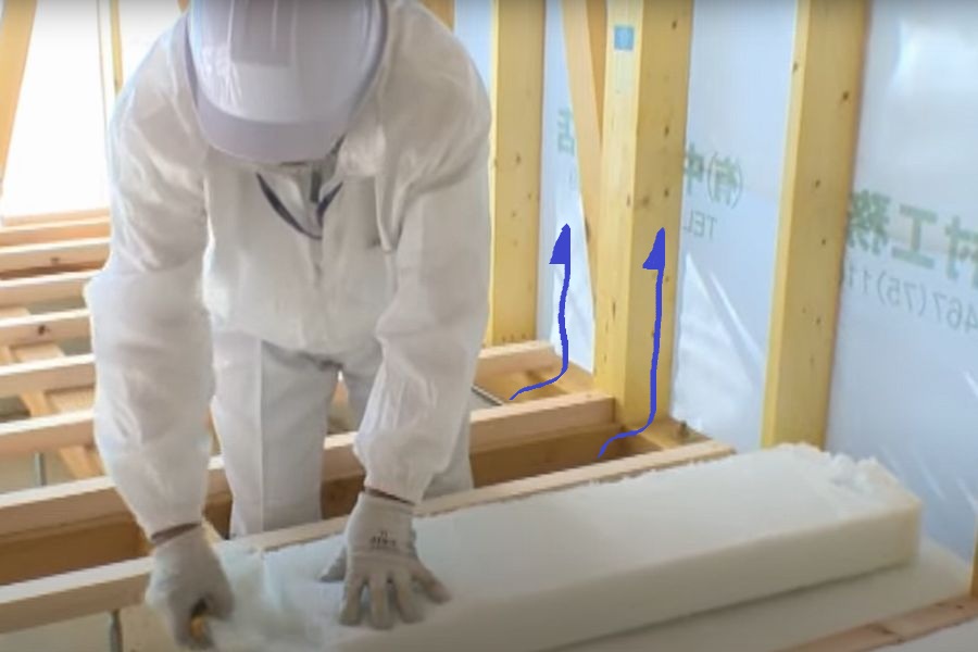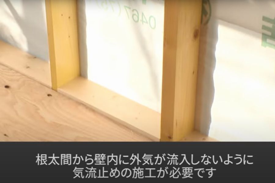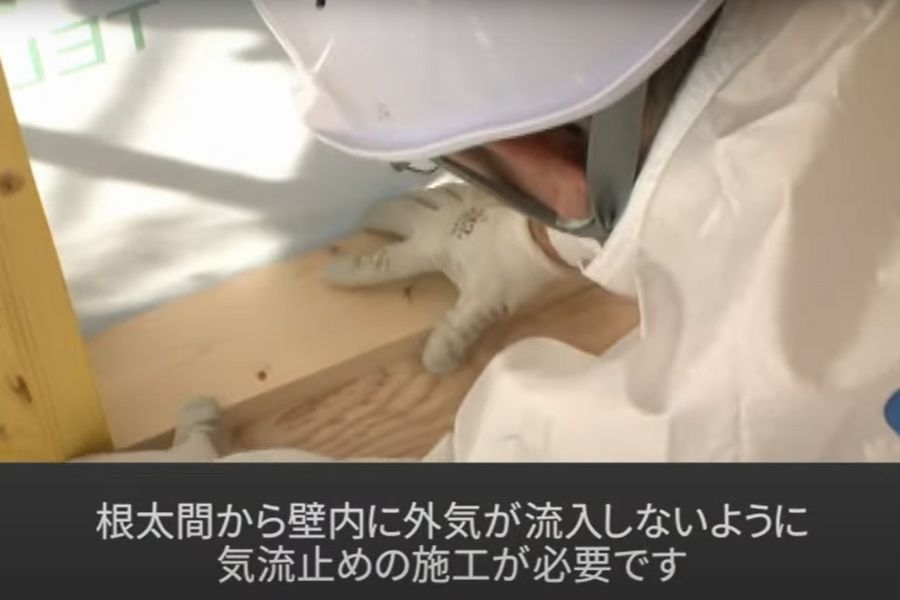床下から壁の中、そして屋根裏へと空気が通り抜けるルートを遮断し、