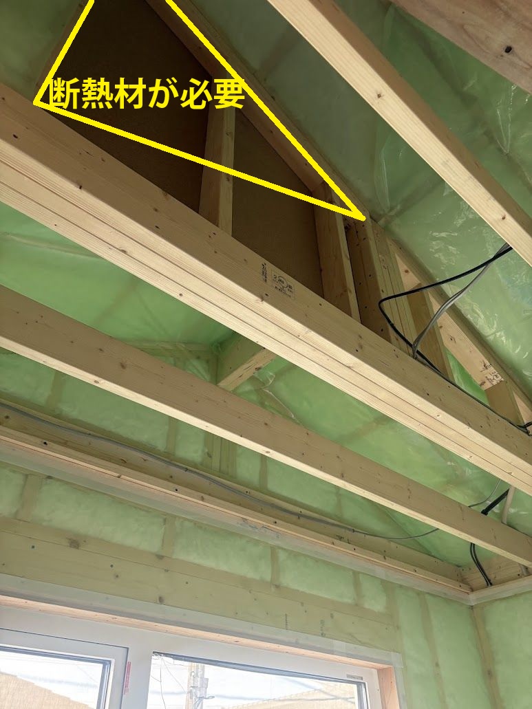 屋根が複雑に影響し、壁の一部に無断熱の場所が、といった目視では気づきにくい部分でした。