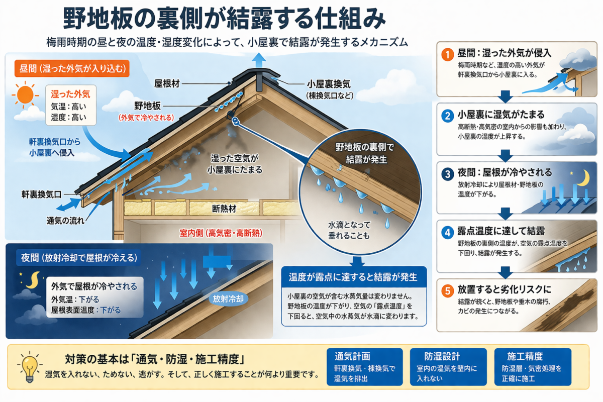 高性能住宅ほど注意したい ―梅雨時期の小屋裏結露の仕組み―